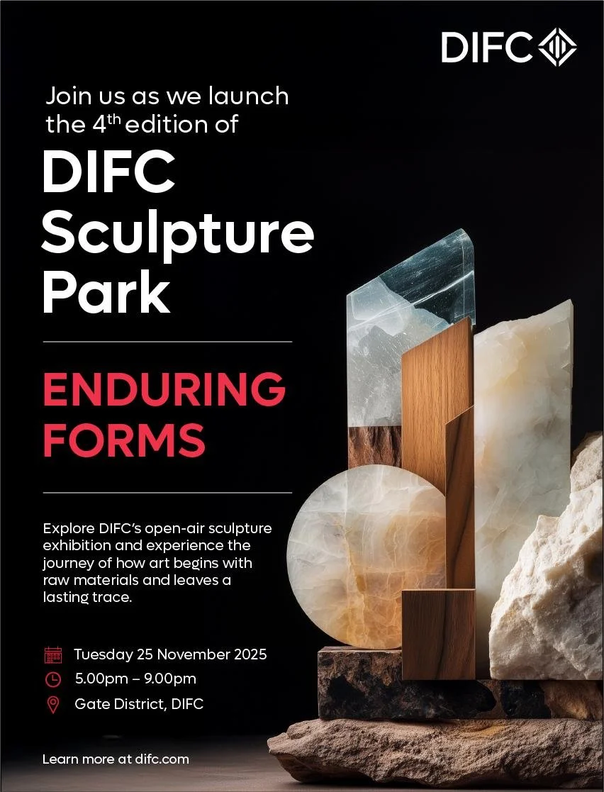 Dubai International Financial Centre (DIFC) announces the fourth edition of the DIFC Sculpture Park, themed “Enduring Forms”. Open to the public from 26 November 2025, the open-air gallery will feature over 50 artworks by 27 artists, inviting visitors to explore how art begins with raw materials and leaves a lasting trace.